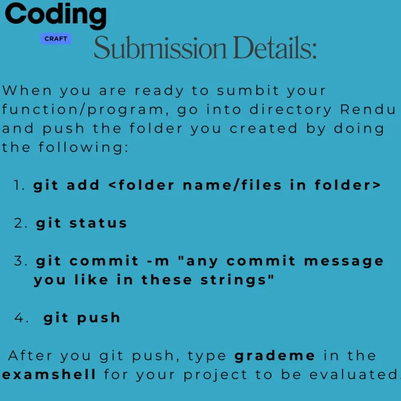 | 🐚 Shell00 – Shell & Unix Fundamentals | Learn how to use the Unix/Linux shell like a real developer: navigate directories, manage files, work with pipes and redirections, explore environment variables, check permissions, write simple shell scripts, and use Git for version control. You will also practice combining commands, chaining operations, and debugging scripts in a live environment. | Create, move, copy, delete files/directories (mkdir, rm, cp, mv), list and explore files (ls, find, tree), redirect outputs (>, >>), use pipes (\|) to chain commands, write small scripts (.sh) to automate tasks, initialize Git repos, commit changes, push to repo you already have. |